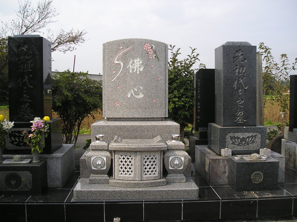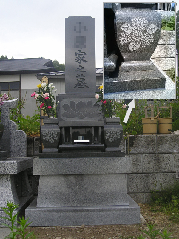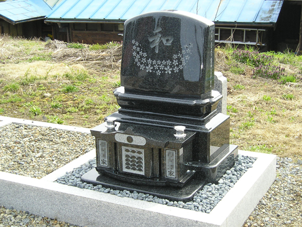 これからも残された家族みんなで和を大事にしたいと言う想いで、表文字に和と彫刻し桜の花を入れお墓に明るさを出したい。